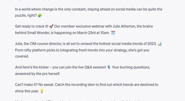 While it may require some editing, it's a great starting point. If there are elements that you want ChatGPT to change, there are some extra statements to help shape the results, which Birss covers in his prompt guide.